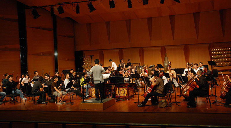 1986年,华乐团在新加坡大会堂举办第一场公开演出“琴韵乐扬’86”,其后每年都呈献一场音乐会,希望借此提高乐团的演奏水平及团员的鉴赏能力。1993年,在为乐团成立十周年而举办的“腾飞”音乐会上,北京音乐学院的黄晓飞教授应邀担任客卿指挥。1994年,乐团在知名指挥家瞿春泉先生的带领下,远赴槟城举行音乐会,深获好评。过后,瞿春泉先生连续为95,96及98年的“琴韵乐扬”音乐会担任客卿指挥。95年的“琴韵乐扬”所呈献的是曾加庆作品音乐会,乐团因此邀请了作曲家前来指导。除了各类大小演出外,乐团也曾派小乐队参加全国音乐比赛,并获得公开小组第三名,一些团员也在个人组比赛中获得多项荣誉。