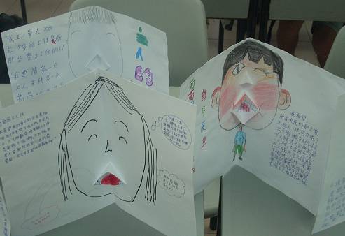 活动报道 小作家学会12月份写作培训课程 December 22, 2008October 31, 2015 gypsy 2419 Views 葡萄园里,为什么两小时比一天还长? 葡萄园里两小时比一天还要长,到底发生了什么事? 在12月22至23日小作家学会假期课程“阅读与写作”上,林景小学的王玮愉老师带着大家通过阅读故事《比一天还长的两小时》,学会如何进行阅读、理解、思考到创意写作。讨论、思考、动手制作,眼、脑、手并用,生动有趣的形式让参与的小朋友们个个跃跃欲试,很有收获。 在玩乐中学习,效果很好呀。 王老师作讲评 “大嘴书”是大家的学习成果。