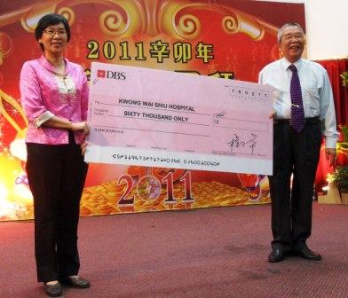本会馆慈善股主任程文华先生在新春佳节期间不忘社会公益慈善事业,慷慨捐出六万新元,赠给广惠肇留医院,特别借敬老宴会进行捐赠仪式。由于程文华先生有事不能出席,由本会名誉委员程依水先生代为转交捐款支票。广惠肇留医院营运总监林美仙女士(也是本会馆会员)代表医院接受捐赠。