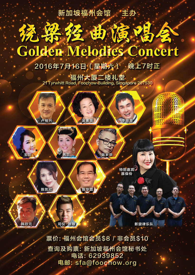 新加坡福州会馆继去年成功举办一场口碑佳的怀旧歌曲演唱会后,2016年将乘胜追击再度与您一起走入时光隧道,重回上个世纪的美好时光。福州会馆将邀请一批曾在“黄金年华”舞台上熠熠生辉的乐龄歌手演绎历经岁月却传唱不衰的老歌金曲,让您再次重温这些经典的风韵,重回青春年少的时光。“绕梁经曲演唱会”由张雄先生主持,并邀请蓀保伶小姐担任特别嘉宾,搭配专业电声乐队现场伴奏更完整的呈献怀旧金曲的原汁原味。