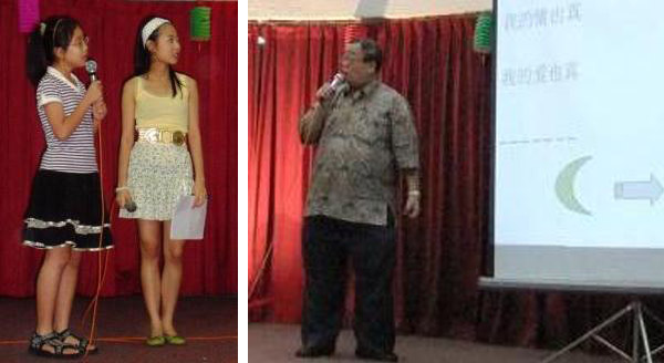 古人有大量诗作咏哦月亮,中秋节也因为这些流传的诗作而倍具诗意。现代的人则用弦歌笙舞来庆祝这个传统节日,晚会就在会馆舞炬团的舞蹈“但愿人长久”中拉开序幕,紧接着华乐团和舞炬团呈献的节目都与月亮有关,把中秋节的气氛渲染得热闹非凡。而特别为晚会设计的游戏“月亮之歌接唱比赛”,准备了一系列关于月亮的老歌新曲,让来宾以接唱的方式重温了“月亮代表我的心”、“城里的月光”等经典歌曲,吸引了不少人登台飚歌,一展魅力。