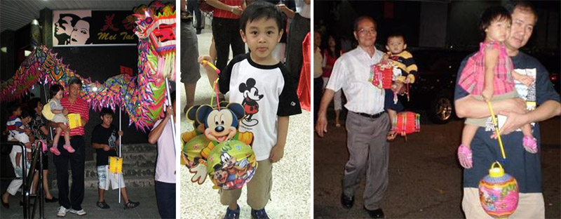 如果舞台上精彩的歌舞节目还不过瘾,那青年团还精心准备了一系列有趣的游戏节目。传统的猜灯谜必不可少,也吸引了众人争相竞猜。“蒙眼尝月饼”,听这游戏的名字就知道有得吃还有得玩,所以大人小孩都跃跃欲试。、中秋食品品尝的游戏节目。由传统福州龙引领的提灯会则是孩子们的最爱,大孩子纷纷尝试举着长长的福州龙带路,小孩子举不动龙,就提着灯笼紧跟着,连刚刚蹒跚学步的小孩子也不甘落后,牵着爸妈的手参加游行,五彩的灯笼照得夜色也起来。