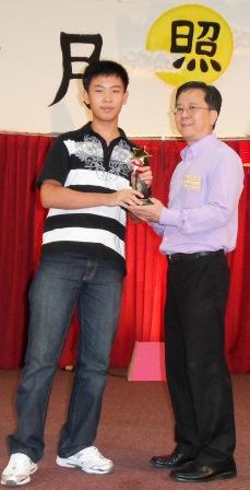 福州会馆副主席郑建铭先生(右)为获得“第十届世界华人学生作文大赛”特等奖的王俊丰同学颁奖