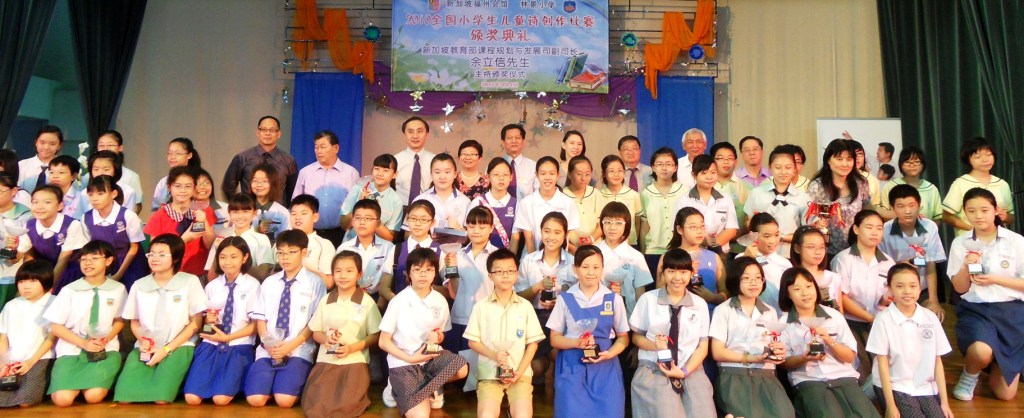 活动报道 2010全国小学生儿童诗创作比赛颁奖典礼 September 4, 2010November 1, 2015 gypsy 2571 Views 新加坡福州会馆 林景小学 联合主办 2010全国小学生儿童诗创作比赛颁奖典礼 本会馆与林景小学于2010年9月4日(星期六)早上9时正在林景小学礼堂隆重举行“2010全国小学生儿童诗创作比赛颁奖典礼”。新加坡教育课程规划与发展司副司长余立信先生应邀担任大会颁奖嘉宾。 得奖名单:甲组;乙组 为了使颁奖礼更具教育意义,颁奖仪式过后将邀请参賽学校呈献文娱表演,展示学校在推广华族文化上的努力和成果。与此同时,汇集了本届儿童诗比赛优胜作品的《嫩芽2》文集也在颁奖礼当天推出。