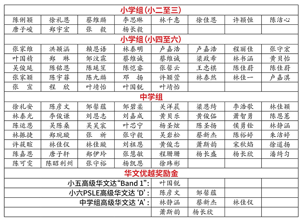 活动报道 2014年中小学组勤学奖励金获奖名单 October 30, 2015November 4, 2015 gypsy 1891 Views 2014年中小学组勤学奖励金获奖名单 (左起)组织股主任程章康、文教股主任林丹文和程文銮主席分别为小学组、中学组及华文 优越奖励金得主颁奖。